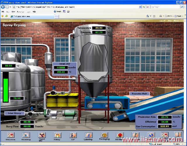 FactoryTalk ViewPoint software supports fully scalable and animated Web displays of existing FactoryTalk View Site Edition (SE) visualization software and AllenBradley PanelView Plus applications from the office, home or on the road via any Internet browser. While the initial release is Internet Explorer (IE) compatible, additional browser and device support is planned. IE’s active hyperlinks and the navigational functionality deliver an interactive experience in addition to typical browser functionality